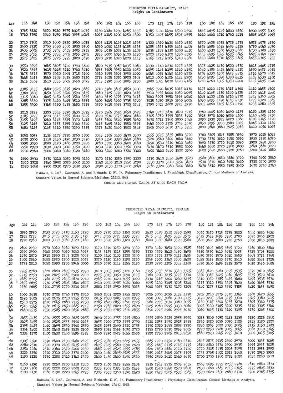 Directly measuring vital capacity can be a hassle. Also, VC is greatly influenced by how tall you are. For these reasons, physiologists often estimate VC using a person’s height: take the person’s height and multiply it by a conversion factor.