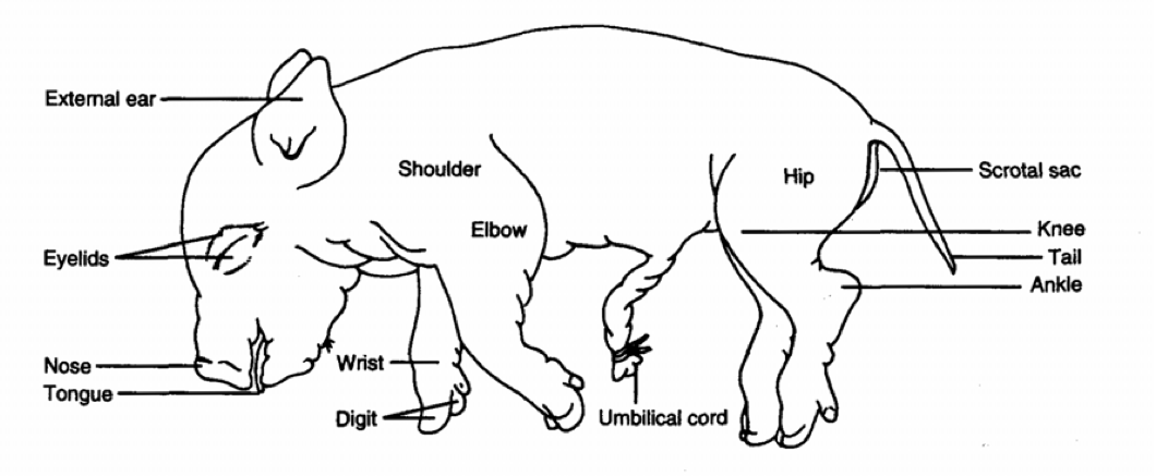 External anatomy of a fetal pig.