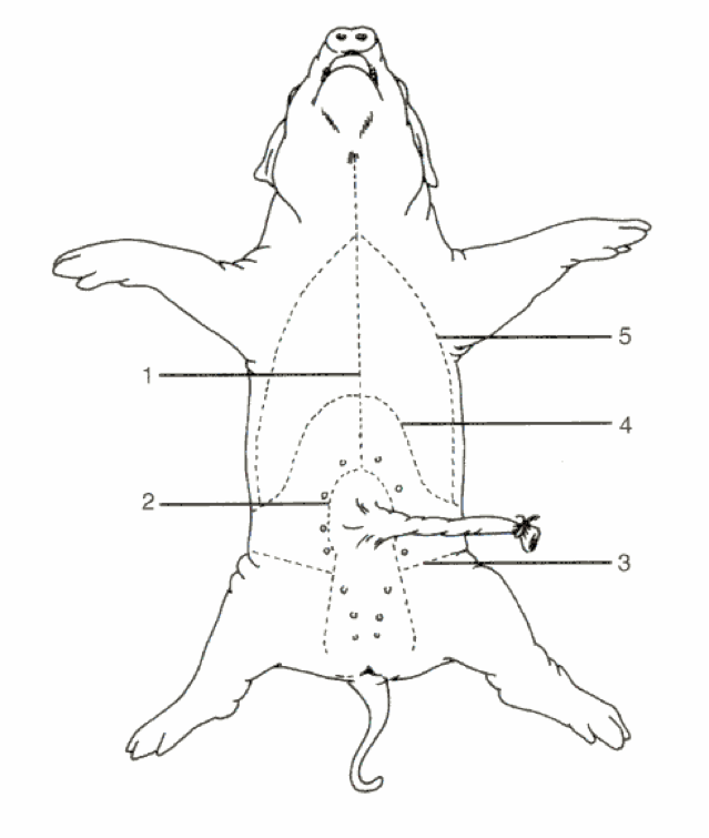 To see the remaining systems you need to dissect the pig. This diagram shows the correct order and location of incisions.